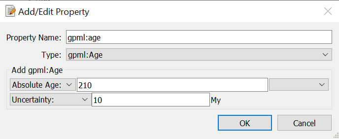 To Add available properties, you must select the property from the table (e.g. gpml:age), then click the + Add button, where you are directed to the Add/Edit Property dialog, in which you can specify the features details.